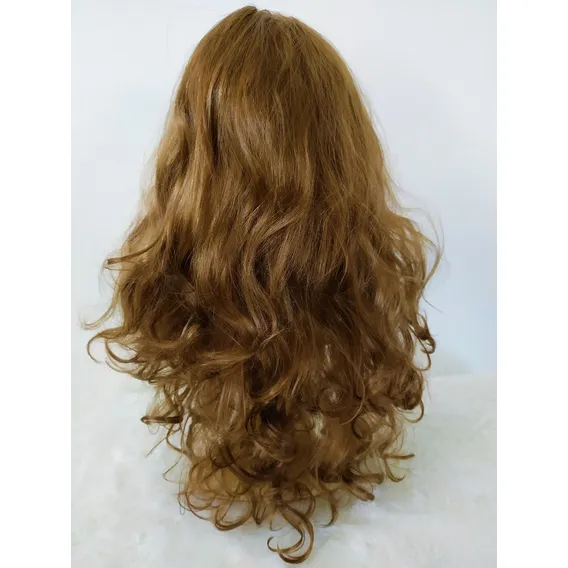 Peruca Cabelo Comprido Encaracolado Acessório Carnaval Festa Cor Castanho
