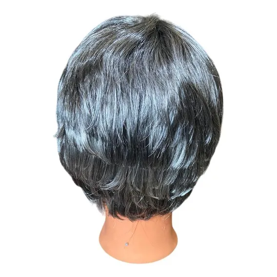 Peruca Curta Sintética Grisalha Escura Feminina/ Masculina