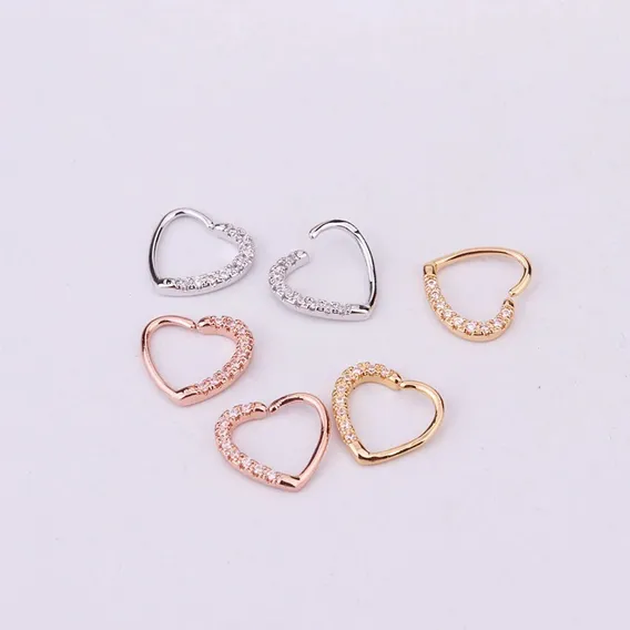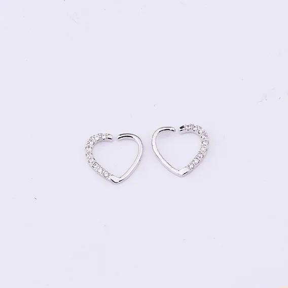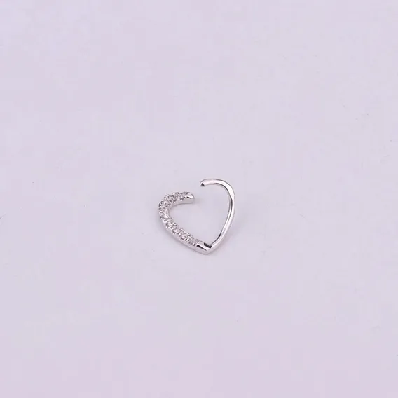 Piercing Daith Coração Prata Ou Dourado Pedra Zirconia 10 Mm Cor Prateado lado direito