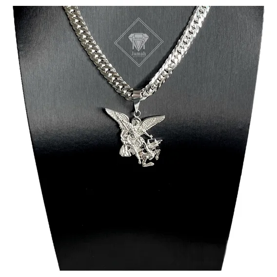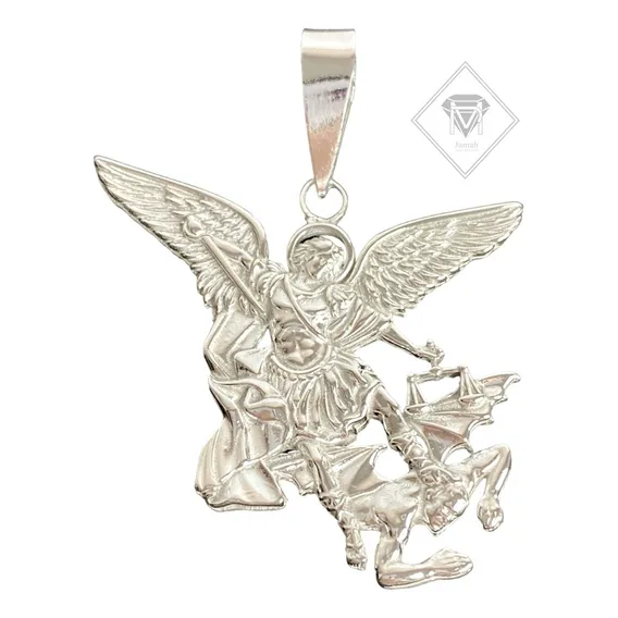 Pingente São Miguel Arcanjo Em Prata 925 Maciça 4,5cm Cor Prateado