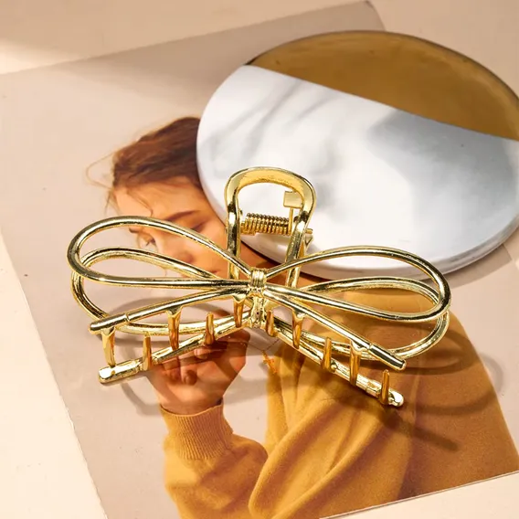 Piranha Presilha Grande Prendedor De Cabelo Metal Luxo Laço