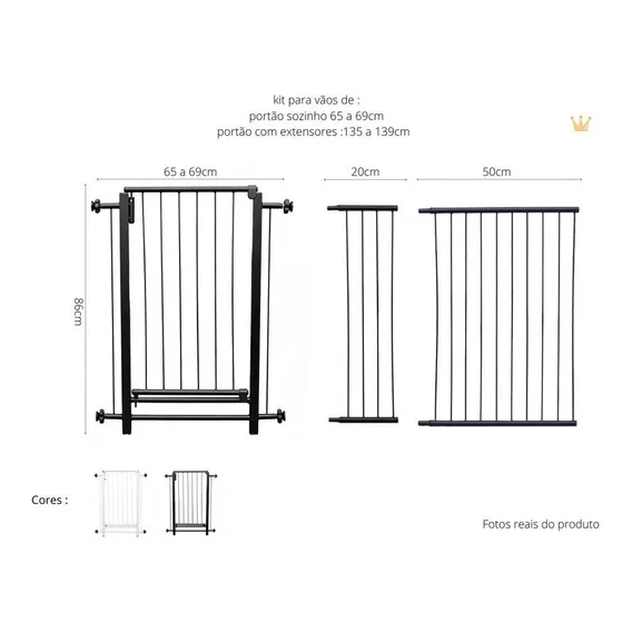 Portão Infantil Segurança Bebe 135cm 136cm 137cm 138cm 139cm Cor Preto Jostech