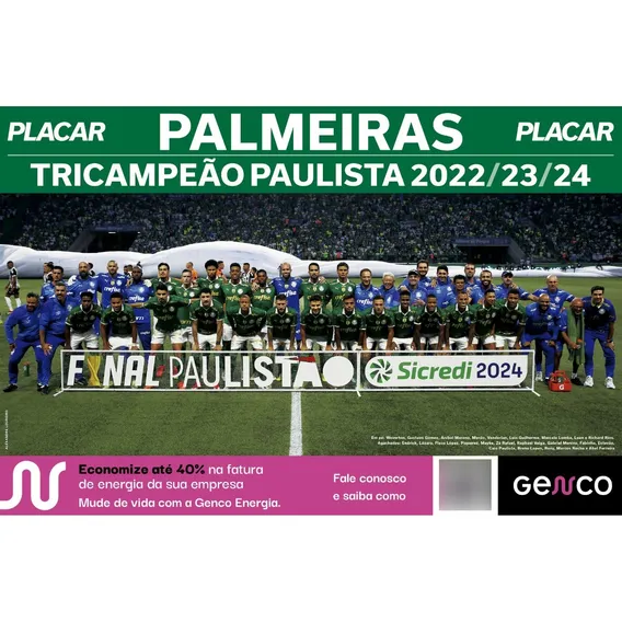 Poster Placar Palmeiras-tricampeão Paulista 2024
