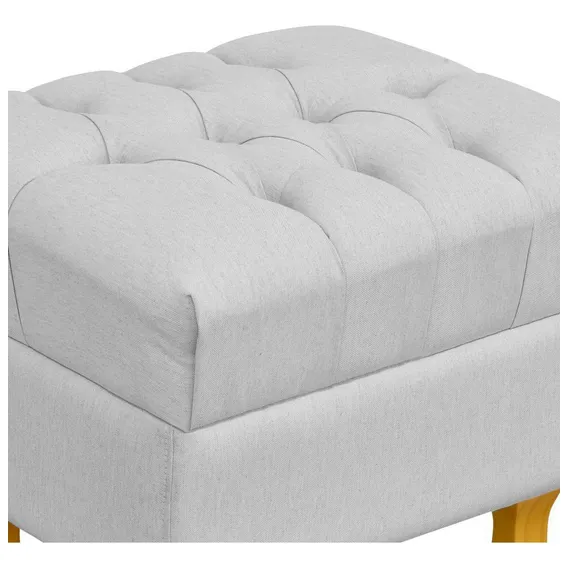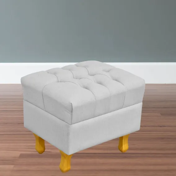 Puff Decorativo París Luis Xv Capitone Linho Cinza