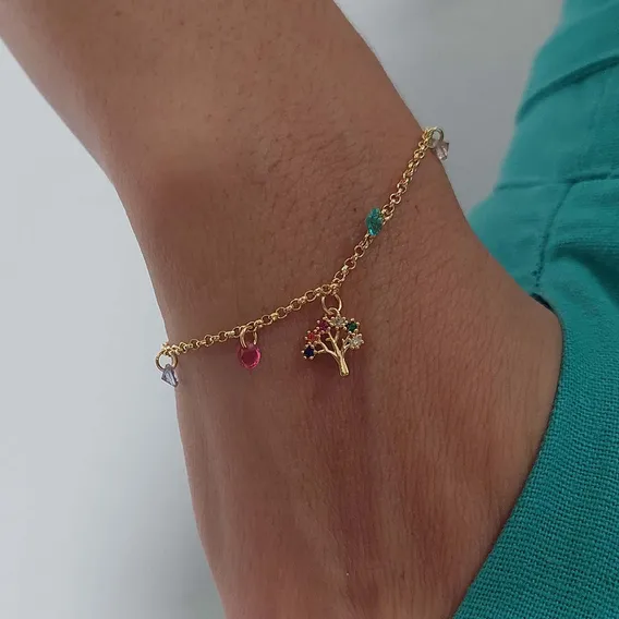 Chega em 5 dias Pulseira Arvore Da Vida Com Zirconias Coloridas Chega em 5 dias!