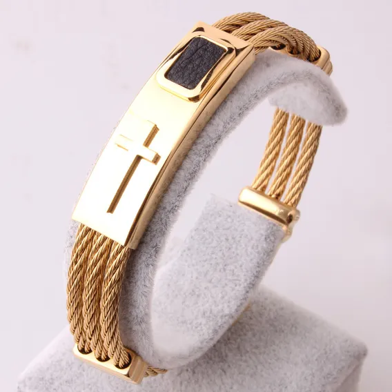 Pulseira Masculina Luxo Aço 316l Folheada A Ouro Cruz Prata Comprimento 20 Cm Cor Dourado Diâmetro 0 Cm