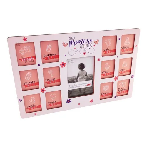 Quadro Porta Retrato 12 Meses 13 Fotos - Baby Primeiro Ano
