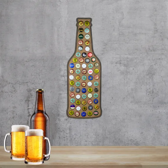 Quadro Porta Tampinhas Barzinho Garrafa 62 Tampinhas Cerveja Cor Amadeirado Fj
