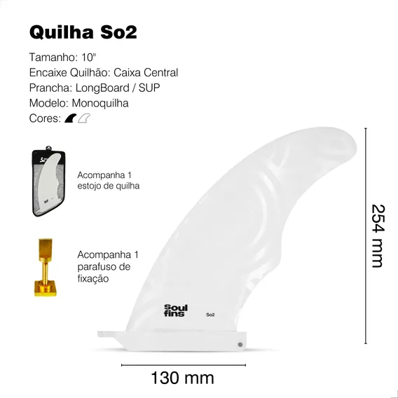 Produto Original Quilhão Sup 10 Polegadas Quilha Central + Parafuso - Stand Up Paddle Sup Caixa Central - Soul Fins - Quilha Branca + Parafuso de Fixação Produto Original