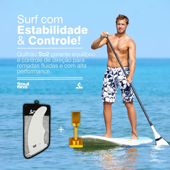A Quilha So2 é uma quilha de stand up paddle de alta performance, com 50% fibra de vidro e 50% nylon de engenharia, acabamento texturizado polido, sistema de encaixe padrão Caixa Central, altura de 254mm e base de 130mm, disponível nas cores preta e branca. Recursos: - Sistema de encaixe padrão Caixa Central - Diminui o atrito com a água Características: - Alta rigidez e performance - Composto de 50% fibra de vidro e 50% nylon de engenharia - Acabamento texturizado polido Especificações: - Altura: 254mm - Base: 130mm - Cor: Preto e Branco