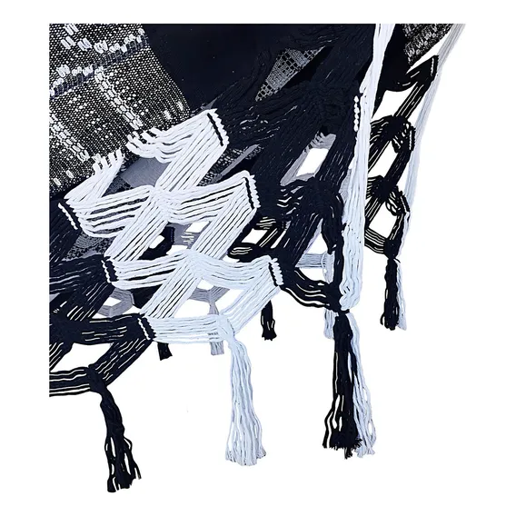 A rede grande de luxo para casal, com 4,40 metros de comprimento, é ideal para descansar e decorar sua casa. Disponível em preto com branco, suporta até 220 kg e tem 100% de algodão. Recursos: - Tela larga para maior conforto - Tecido 100% algodão - Design luxuoso e moderno Características: - Comprimento total: 4,40 m - Largura do tecido: 1,55 m - Capacidade máxima de peso: 220 kg Especificações: - Comprimento do tecido: 2,90 m - Peso total: 4,000 kg - Altura dos ganchos: 1,50 à 1,60 m - Distância entre os ganchos: 3,50 à 4,30 m