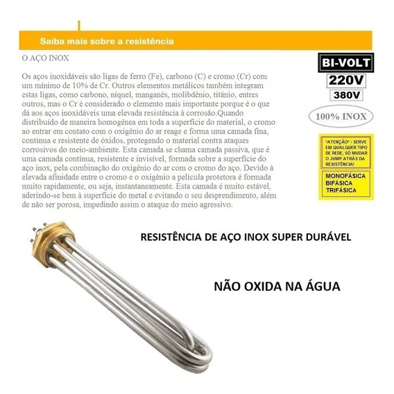 - Tipo de ResistĂȘncia: tubular de imersĂŁo