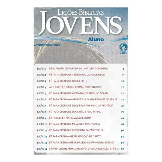 - Cada lição tem um tema específico, como Fé: O ponto de partida de uma vida com Deus, a natureza humana e divina de Jesus, entre outros.