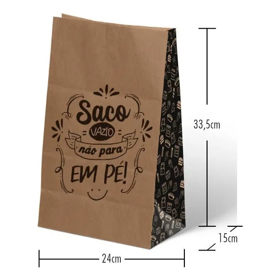 Saco Kraft Médio Para Delivery, Viagem Reforçado 100un