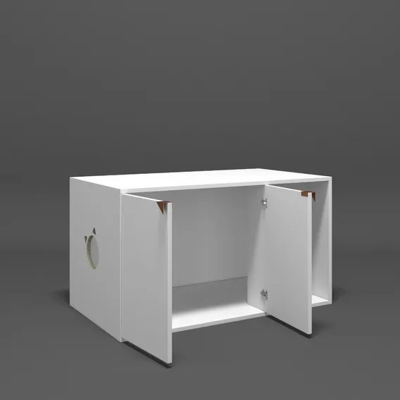 Sanitário Banheiro De Gato Caixa De Areia Fechada Box Cat Cor Branco com Cobre