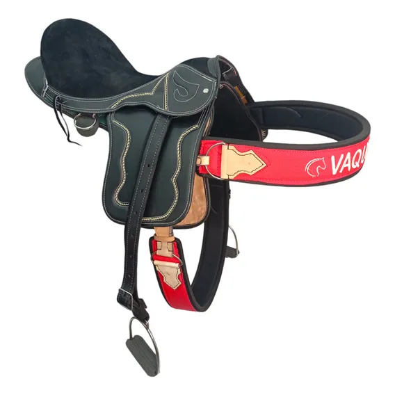 Sela tradicional para vaquejada em couro legítimo, tamanho 15 e 16 polegadas, indicada para adestramento, trabalho e cavalgadas leves. Recursos: - Par loros de couro laminado - Par estribos aço inox reforçado - Conjunto de peitoral e cilha (barrigueira) Características: - Idade: Adulto - Modelo: Vaquejada - Material: Couro legítimo - Armação: Madeira - Tamanho: 15 e 16 polegadas - Peso: 6kg - Fabricação: Cachoeirinha - Produto customizado: Não Especificações: - Indicação de uso: Adestramento, trabalho, cavalgadas e corridas leves - Cor do peitoral cia: Pode ser escolhida após a compra