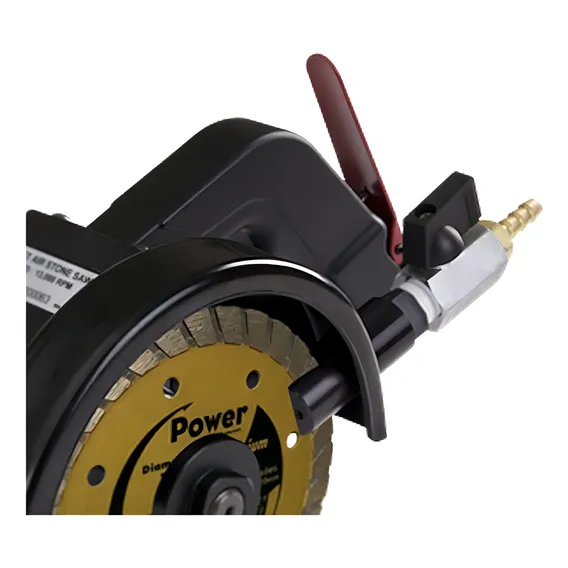 A serra mármore pneumática 4" a água SGT-1220 é ideal para marmorarias, oferecendo maior rendimento, segurança e redução de poeira e ruído comparado às máquinas elétricas.