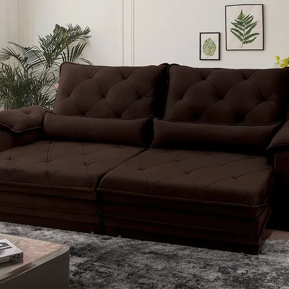 O sofá reclinável Dakota 2,30cm em marrom oferece conforto duradouro e elegância para a sala de estar, com sistema de roldanas, estrutura robusta e tecido veludo. Recursos: - Usuário de até 120kg por assento - Pés em PVC - Rodízios com trava Características: - Sistema reclinável - Design moderno e sofisticado Especificações: - Estilo: Moderno - Quantidade de lugares: 3 - Cor: Marrom - Altura: 105cm - Largura: 230cm - Profundidade: 121cm - Densidade do assento: D-28 - Material da estrutura: Eucalipto - Peso: 92kg