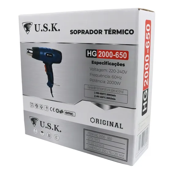 Soprador TĂ©rmico AtĂ© 650Âșc 2000w 04bicos Hg2000-650 220v Usk