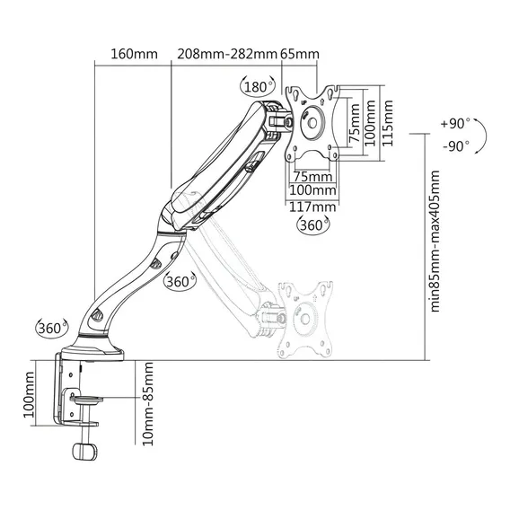 Suporte Articulado SBRM713 de mesa para TV/Monitor de 13" até 27" preto Brasforma