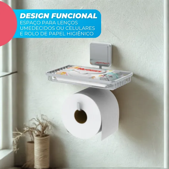 Suporte Porta Papel Higiênico Papeleira Com Suporte Celular