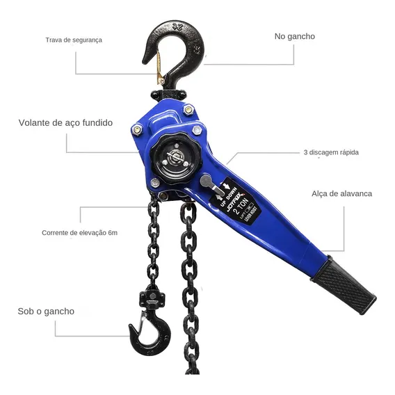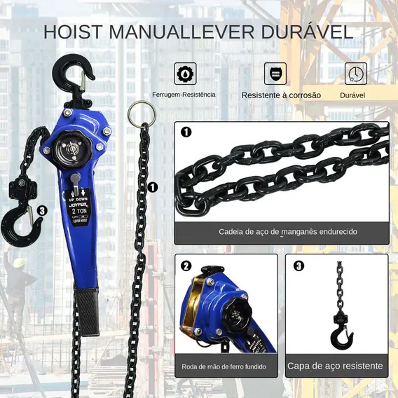 Talha Manual Com Alavanca 2 Ton 8mm, 3m Elevevação