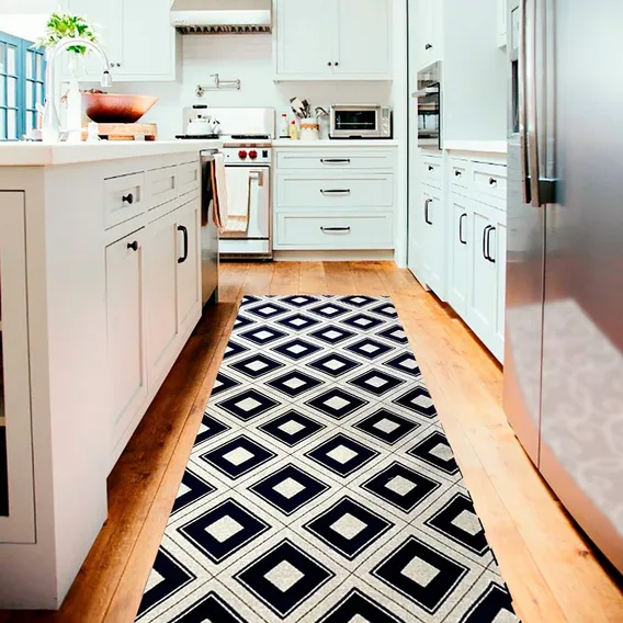 Adicione estilo e elegância ao seu lar com a passadeira Gold Geométrica, perfeita para cozinha, quarto, corredor ou sala. Tecido jacquard macio e não alérgico, antiderrapante e fácil de limpar. Recursos: - Design geométrico - Minimalista e chique - Fácil de limpar com aspirador de pó e pano úmido - Secagem rápida - Não acumula poeira Características: - Tecido: Jacquard - Superfície: 72% Algodão e 28% Poliéster - Antiderrapante: Sim, com borracha - Perfil: 2mm Especificações: - Medidas: 1,35m x 45cm - Material base: 100% Policloroetileno de Vinila (PVC)