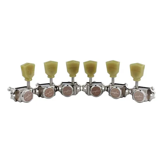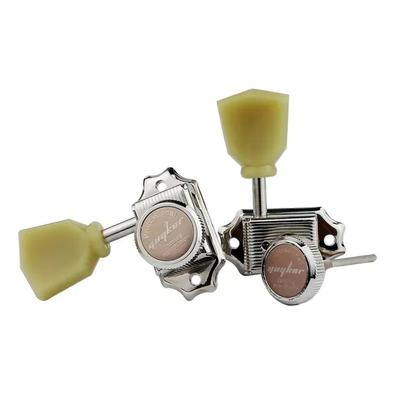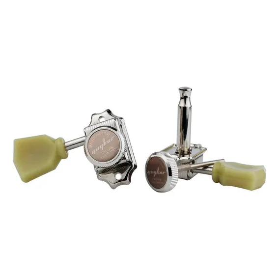 A Guyker oferece a Tarraxa Com Trava para Violão Guitarra 3x3 Lp Sg Vintage, perfeita para evitar desafinação. Recursos: - Evita desafinação - Design vintage - Alta qualidade Características: - 3 + 3 configuração - Trava inclusa - Buchas e parafusos Especificações: - Fabricante: Guyker; - Modelo: GK373N-M7G; - Cor: Niquelado (Ni); - Ratio: 1:15; - Botão: Tulipa Vintage; - Trava: Sim; - Buchas: Sim; - Parafusos: Sim.