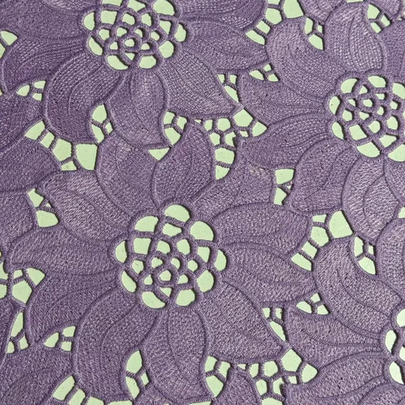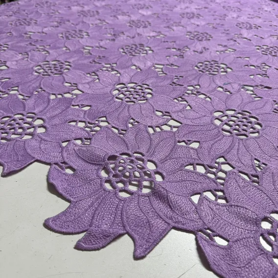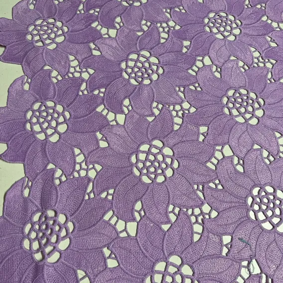 Tecido Renda Guipir Pesada Floral 1,30m Vestidos -0,50 Cor Lilás Desenho Do Tecido Bodado