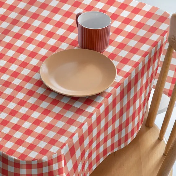 Toalha Mesa Térmica Impermeável Xadrez Vermelha 2,50x1,40