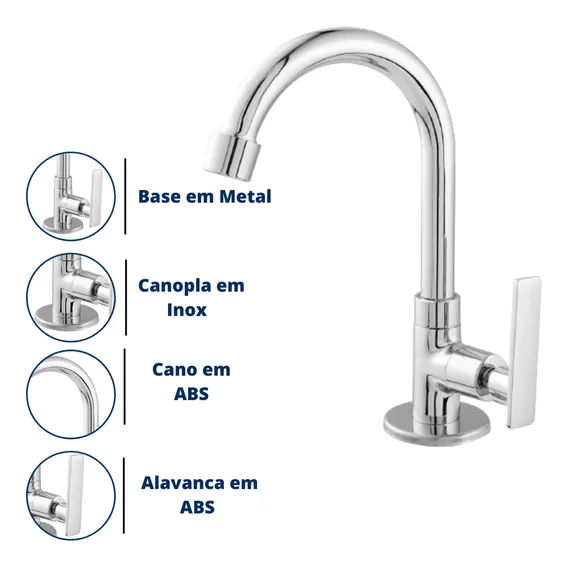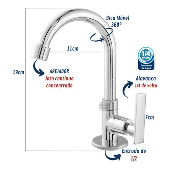 Torneira Banheiro Lavabo Bica Alta 1/4 De Volta