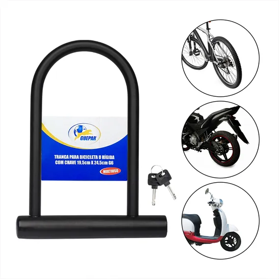 Tranca U Para Bicicletas E Motos Guepar G6 Máxima Proteção Cor Preto