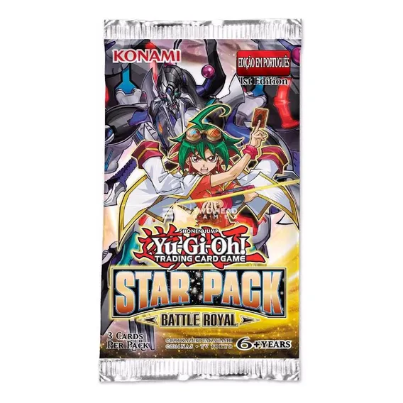 O Pacote Estelar ? Batalha Real de 2017 é ideal para Duelistas, contendo 10 boosters com 3 cartas cada (estampas sortidas), incluindo 3 estampas comuns e 1 única Starfoil. As estampas são baseadas em personagens populares do anime Yu-Gi-Oh! ARC-V. Recursos: - Estampas sortidas - Inclui Starfoil: Camarartista Segurro, Golpe Secreto de Yosenju, Diva Florescente, Coral Melodiosa e Fusão Peladura! Características: - Contém 10 boosters - Cada booster tem 3 cartas - 3 estampas comuns + 1 Starfoil Especificações: - 49 estampas comuns - 1 estampa Starfoil - Traduzido para Português - Fabricado por Konami